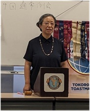 トーストマスターはYさんです。足腰周りを鍛えるため、自分に合った股関節の体操を最近知って継続されている、というお話をされました。