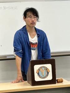 見に行った「棒読み」芝居のユーモアを交えた話を題材に、苦手な「人前で話すこと」もこの場を活用し楽しんでいきたいとの、とても前向きなスピーチでした。