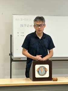S会長の豪雨に因んだ「開会挨拶」に続き、Kトーストマスターの「奨学金返済完了報告」が続きました。